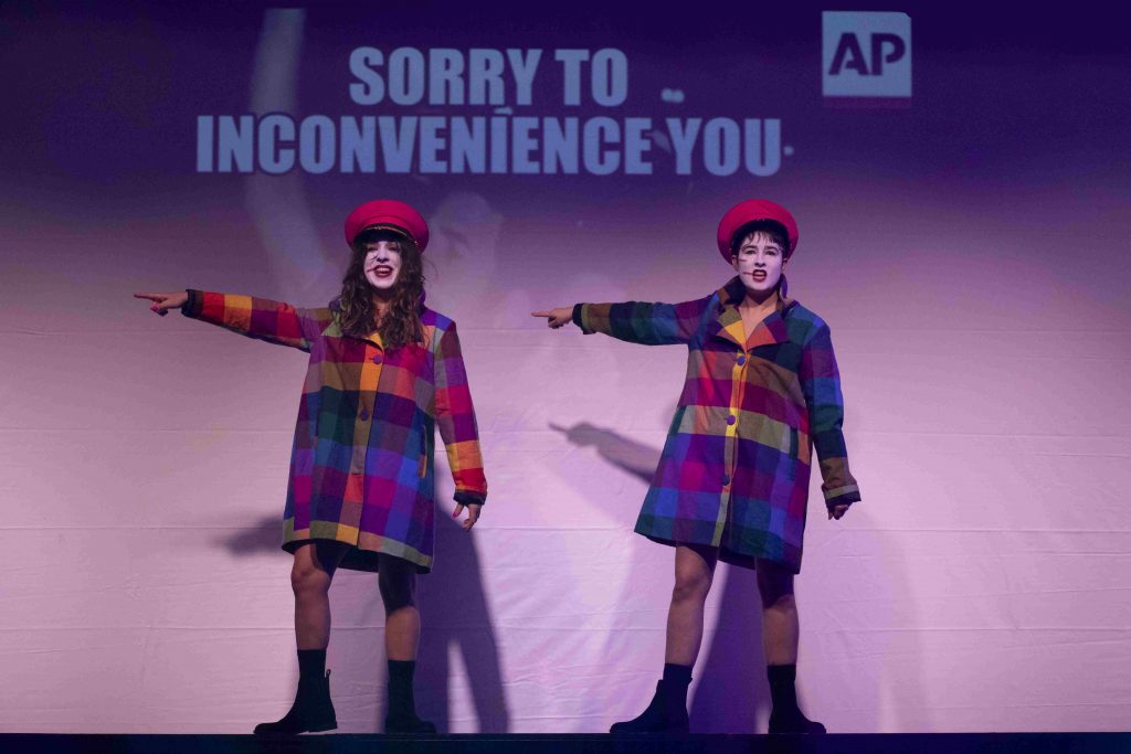 Con una audiencia expectante, la premisa es sumergirse en esta función en la que lo impredecible juega una parte importante. Para comenzar, una voz en off ofrece dos opciones a la audiencia. La primera, un recorrido por la democracia y la historia al mejor estilo Wikipedia, que dicho sea de paso es un sitio que no deberíamos perder ante el avance hiperacelerado de la Inteligencia Artificial y que merece un artículo aparte. El público se inclina por la segunda opción: dos patinadoras desnudas que presentan su propia historia. “Lo que tienen que hacer las mujeres para llamar la atención”, dicen y, por supuesto que, dadas las circunstancias y por experiencia propia, les creemos. La compañía en cuestión, S!hit Theatre integrada por Rebecca Biscuit y Louise Mothersole lleva quince años de trabajo, en donde lo más memorable que les ocurrió, además de haber presentado catorce shows, “algunos buenos, otros olvidables” según ellas, es la vida misma.