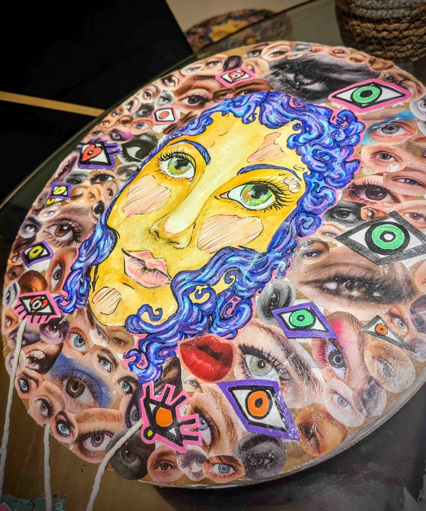 Una de las decisiones más importantes de Purple Reign es su emplazamiento. En lugar de una galería tradicional, la exposición tiene lugar en un espacio cultural híbrido donde el arte se encuentra con la vida cotidiana incluyendo pizza, conversación, DJs y comunidad.